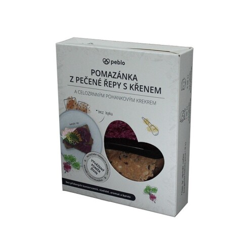 Základem pomazánky je červená řepa, díky které obohatíte jídelníček o další druh zeleniny. Přidáním křenu jsme zajistili ten správný říz, a abychom vám dopřáli dokonale vyváženou svačinku, můžete si pomazánku namazat na křupavý pohankový krekr, který je součástí balení. Pohanka obsahuje rutin, který posiluje naše cévy, a také větší množství vlákniny, která dopomůže správnému trávení.